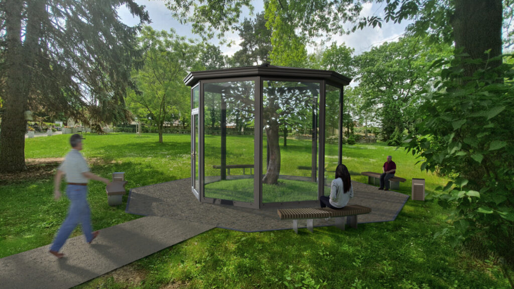 Moderní umělecký objekt s uzamykatelným skleněným altánem byl navržen pro hřbitovy. EIWA nabízí nádhernou, důstojnou a cenově dostupnou alternativu ke standardním hrobovým místům. Na velmi malém prostoru se získají stovky nových personalizovaných hrobových míst.