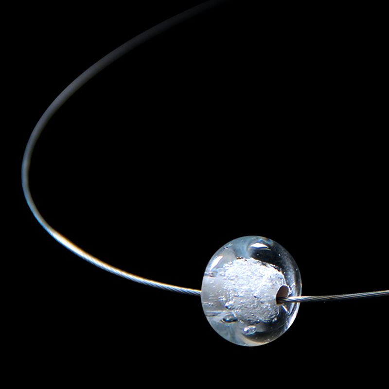 Popel zesnulého je přímo zataven do skleněného korálku. Součástí výrobku je struna na krk.