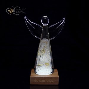 Popel zesnulého je přímo zataven do sošky Anděla, ručně vyrobeného z kvalitního křišťálu spolu s 24kr zlatem. Tento dekor byl navržen i jako set se s malým Andělíčkem PS14-0, který je možné objednat samostatně v libovolném množství za zvýhodněnou cenu.
